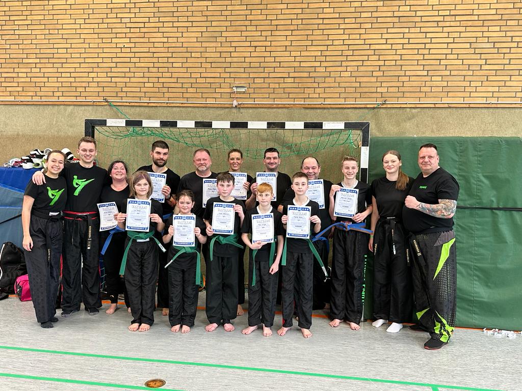 Wer hart trainiert, will auch die nächste Stufe erreichen. Am 18. Februar 2023 gab es für 33 Prüflinge die Chance dazu: das Stichwort lautet Gürtelprüfung.